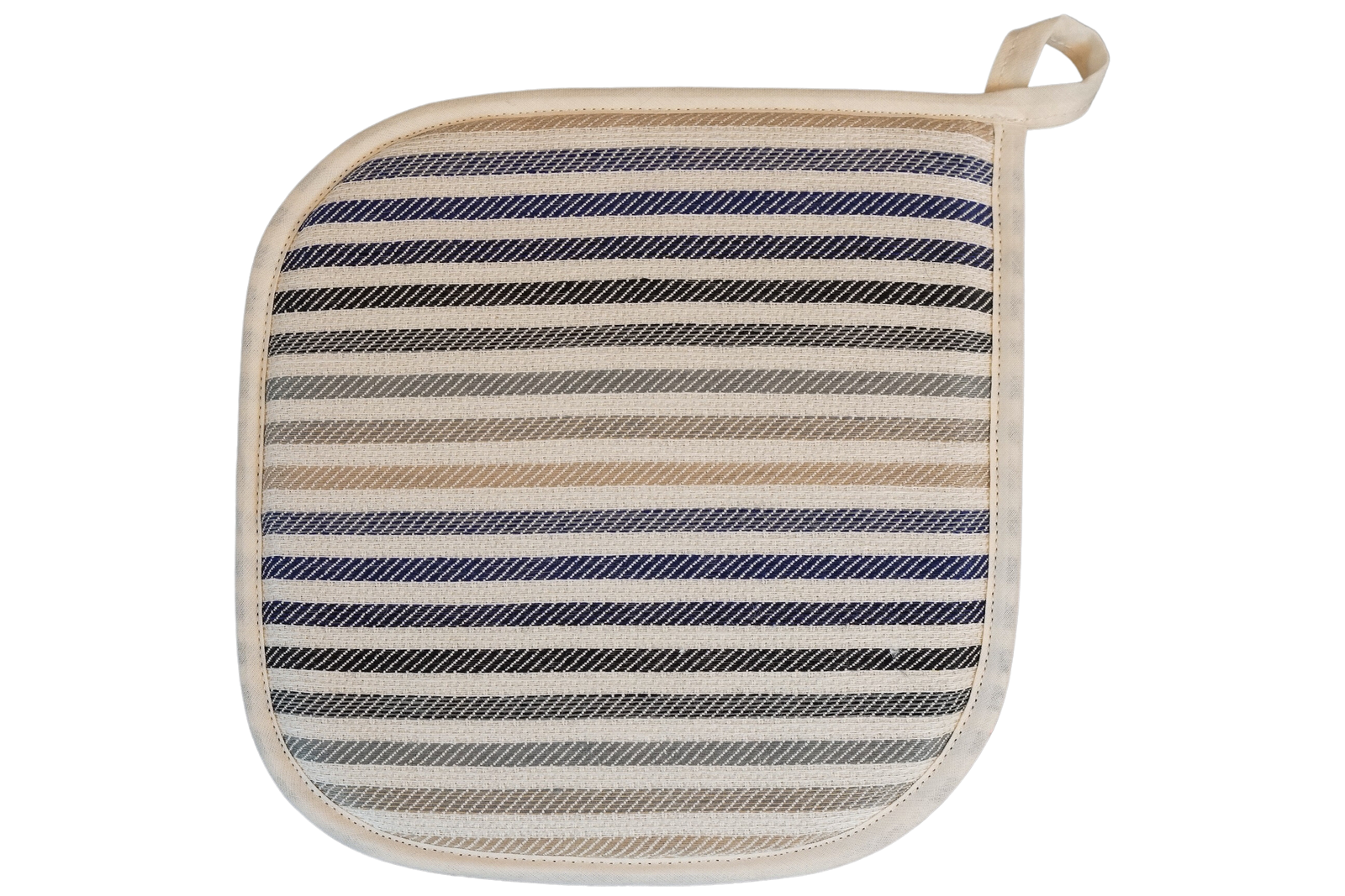 Aggiungi un tocco di eleganza naturale alla tua cucina con queste presine quadrate in misto cotone (50%) e lino (50%), caratterizzate da un raffinato disegno a righe. Perfette per un uso quotidiano o come elemento decorativo, uniscono praticità e stile in un solo prodotto.